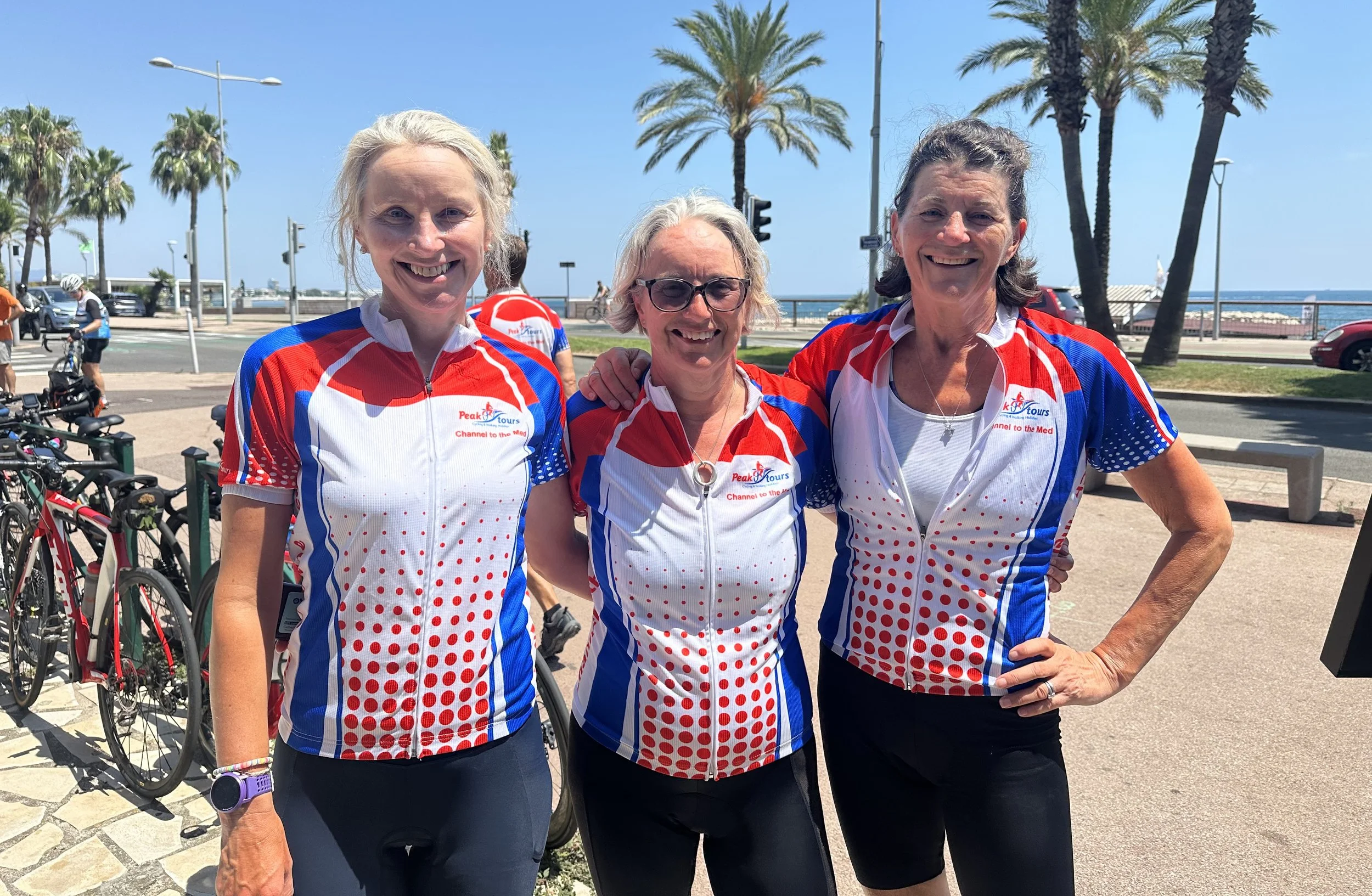 (l-r Juliette, Catherine, Sophie) at the finish in Nice